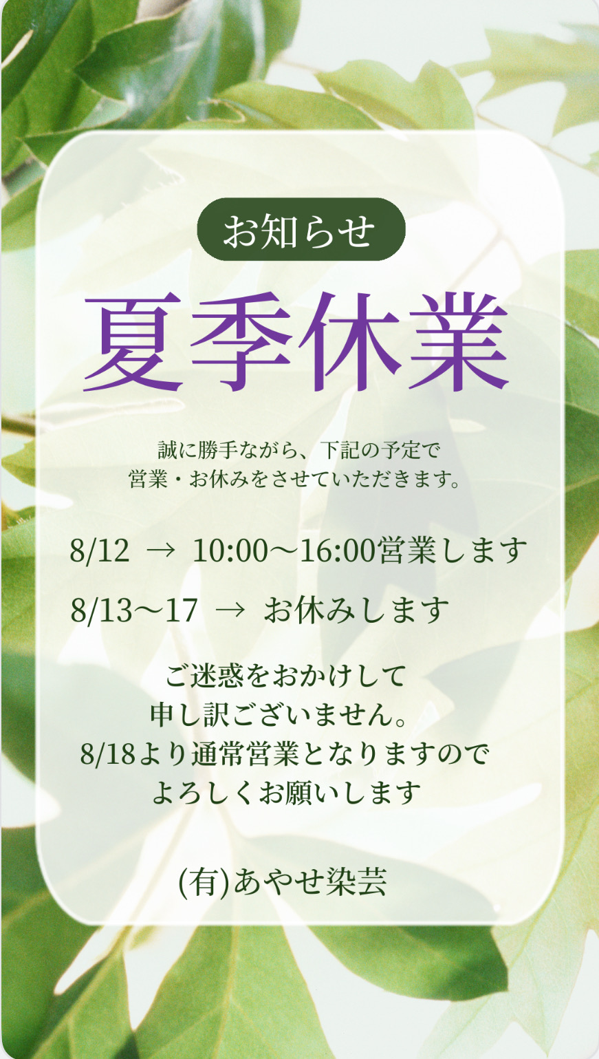 2025 夏季休業のお知らせ 2025.08.4 Tweet Share Hatena Pocket RSS feedly Pin it Tweet Share Hatena Pocket RSS feedly Pin it